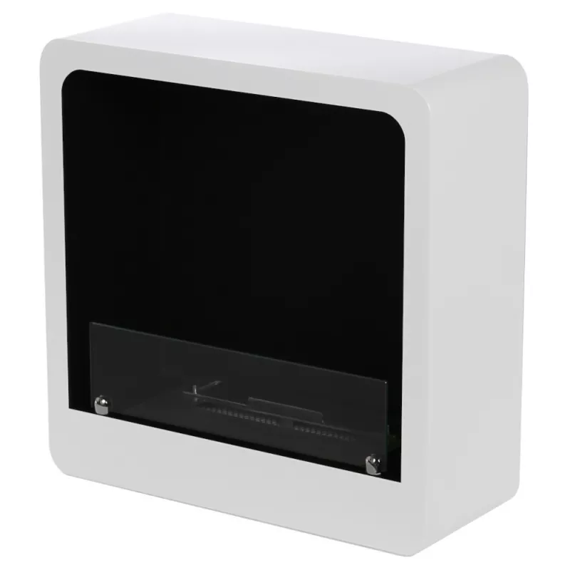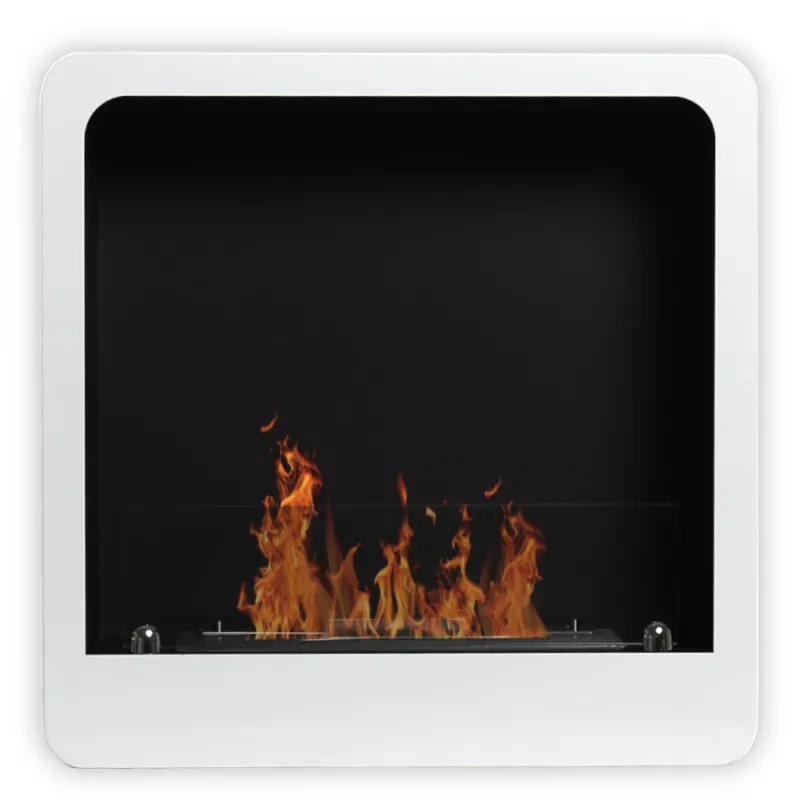 Arcadia i vit, högglansig finish är en väggmonterad bioetanolkamin / etanolkamin som kombinerar modern design med funktionell värme och dekorativt flamspel — helt utan behov av skorsten eller omfattande installation. Denna väggplacerade eldstad är perfekt för vardagsrum, lounge, sovrum eller sociala ytor där du vill skapa mysig atmosfär och kompletterande uppvärmning i din inredning.