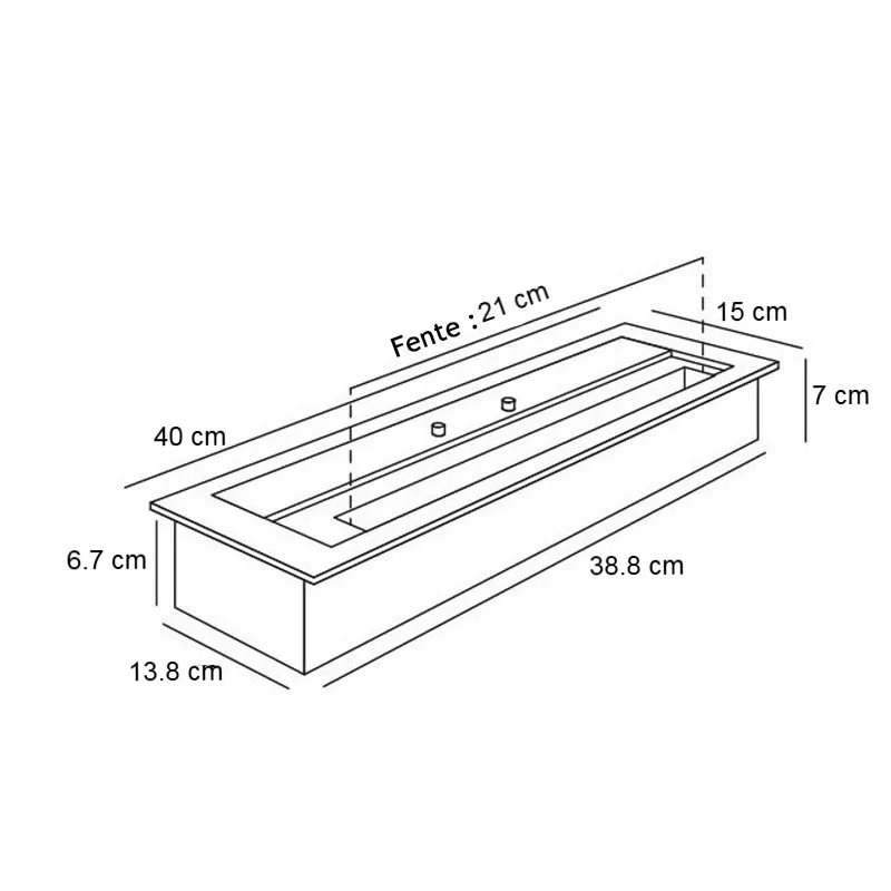 Brännaren har en generös bränsletank på ca 2,5 liter och en effekt på ca 2 800 W, vilket ger en balanserad värmeeffekt samtidigt som den skapar en inbjudande atmosfär i rummet. Den är lätt att integrera i egna projekt – vare sig du bygger en skräddarsydd eldstad, installerar i en designpanel eller vill ha en vacker centerpiece i ditt vardagsrum.