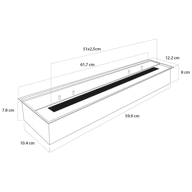 Denna etanolbrännare är perfekt för integration i egna eldstadsbyggen, designpaneler eller dekorativa ramar, och den robusta konstruktionen i dubbel vägg gör den både pålitlig och hållbar. Oavsett om du bygger en modern eldstad, renoverar en befintlig installation eller vill ha en stor och dekorativ flamma i centrum, erbjuder denna modell både funktion och stil.