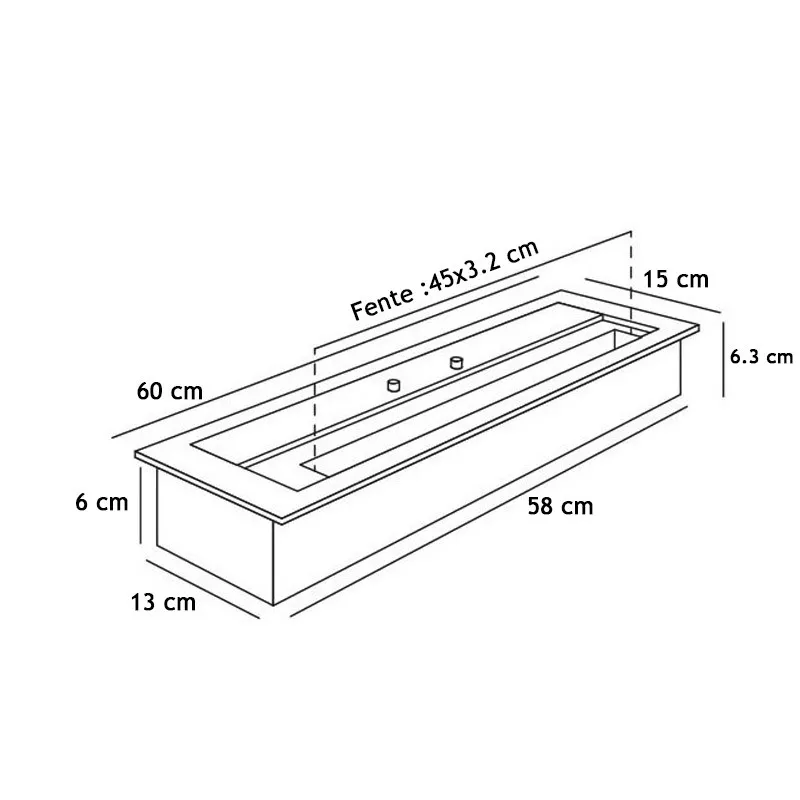 Med sina smidiga mått (60 × 6,3 × 15 cm) och robusta konstruktion är denna etanolbrännare idealisk för dig som bygger en egen eldstad, designnisch eller vill uppgradera en befintlig installation. Den breda lågan sprider både värme och atmosfär i rummet samtidigt som den rena förbränningen ger en trivsam upplevelse utan sot, lukt eller aska.