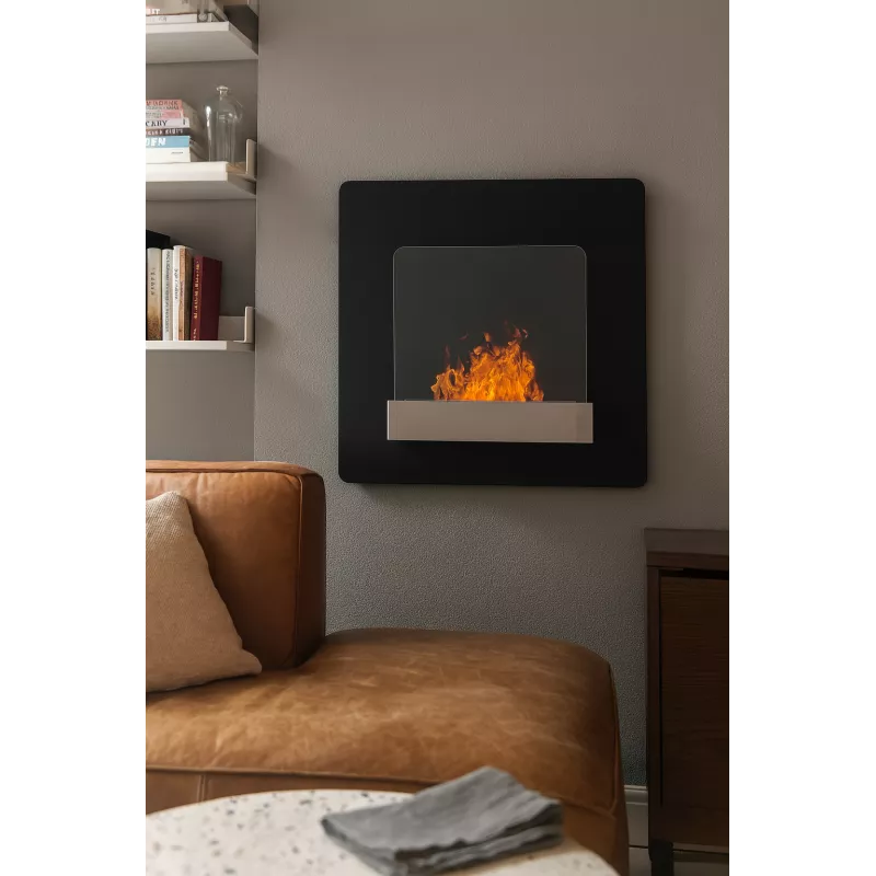 Fluence i matt svart är en väggmonterad bioetanolkamin / etanolkamin med stilren, kvadratisk design som skapar ett verkligt dekorativt flamspel och kompletterande värme – helt utan skorsten eller rökkanal. Denna modell är perfekt som vägghängd eldstad i vardagsrum, lounge eller sociala ytor där design, atmosfär och funktion ska stå i fokus i din inredning.