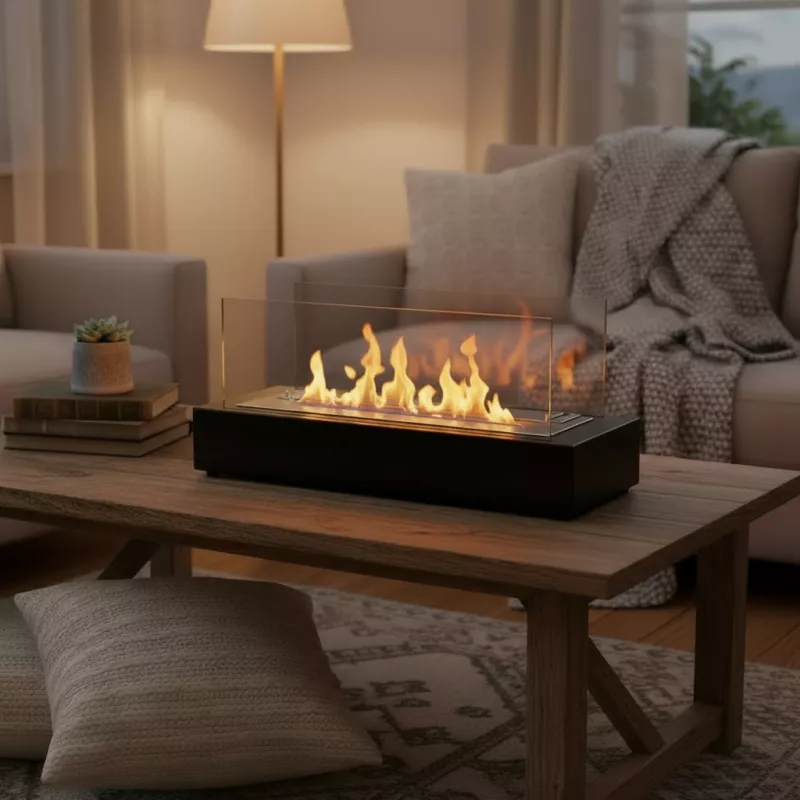 Lecce Svart är en dekorativ bioetanolkamin i matt svart finish som skapar värme, ljus och atmosfär i ditt hem utan att kräva installation, skorsten eller rök. Den svarta färgen ger en sofistikerad och tidlös känsla, perfekt för vardagsrum, loungeytor eller sociala utrymmen där du vill ha levande eld och elegant design som samspelar med inredningen.