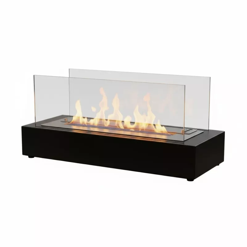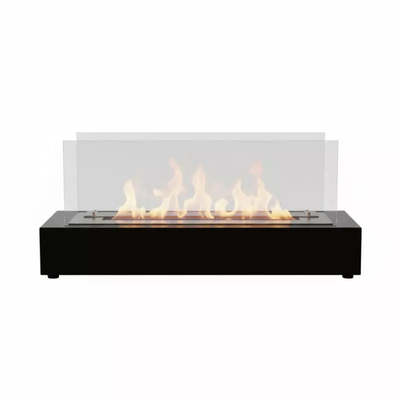 Två skyddande glas ger både trygghet och en optimal sikt över lågorna, medan den matt svarta finishen skapar en varm kontrast i rummet och förstärker den dekorativa effekten. Lecce Svart är en funktionell och elegant bioetanolkamin som förhöjer hemmets atmosfär med både design och värme.