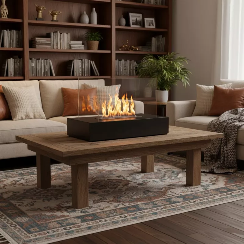 Lena är utrustad med en 2,2 liters justerbar rostfri brännare (ca 4 000 W effekt) som ger ett stabilt och dekorativt flamspel. Brännaren förbrukar cirka 0,5 liter bioetanol per timme och returnerar en effektiv värme som kan höja rumstemperaturen med flera grader. Den justerbara flammregulatorn låter dig enkelt anpassa intensiteten efter behov och skapar en inbjudande stämning även i större vardagsrum.