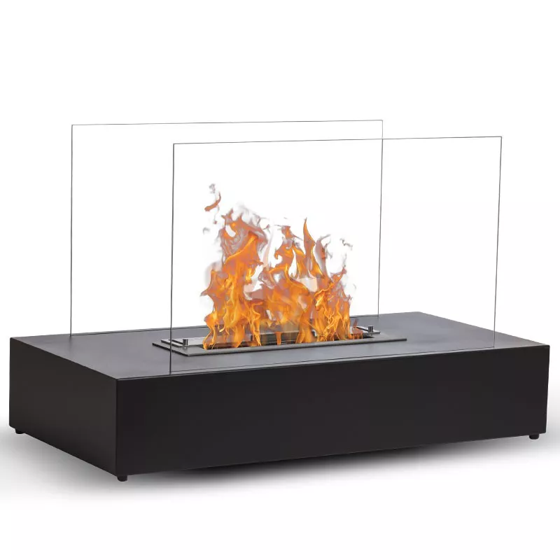 Lena Svart är en fristående etanolkamin i svart finish som kombinerar funktionell värme och modern design i ett elegant paket. Modellen är byggd för att placeras på golvet och fungerar som ett dekorativt blickfång i vardagsrum, loungeytor eller sociala utrymmen där du vill skapa levande lågor och en varm atmosfär – helt utan skorsten, installation eller rök. Den matt svarta kroppen i stål och de två skyddande glasskivorna ger lågorna en fri och estetisk inramning, samtidigt som designen är ren och tidlös.