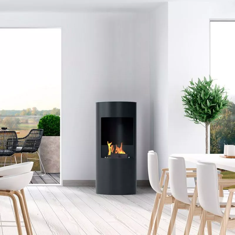 Leonis är ett utmärkt val om du vill ha en designad etanolkamin med tydlig vertikal form, som både värmer och skapar mysig atmosfär med verkliga lågor i ditt hem – perfekt som fokalpunkt i vardagsrummet eller loungen.