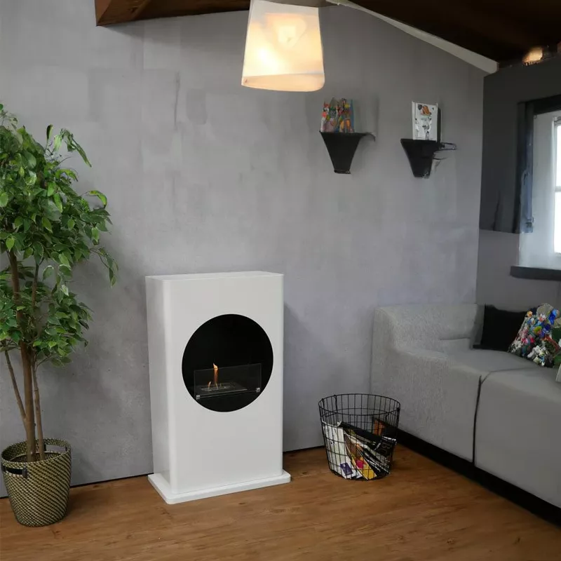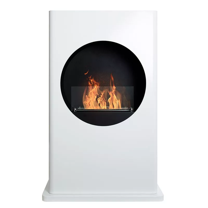 Marineo Vit är en dekorativ fristående etanolkamin i blank vit look som kombinerar stilren design med verkliga lågor och värmeeffekt – helt utan skorsten eller installation. Den är perfekt för vardagsrum, loungemiljöer eller öppna sociala ytor där du vill skapa en inbjudande och mysig atmosfär med levande eld och modern estetik.