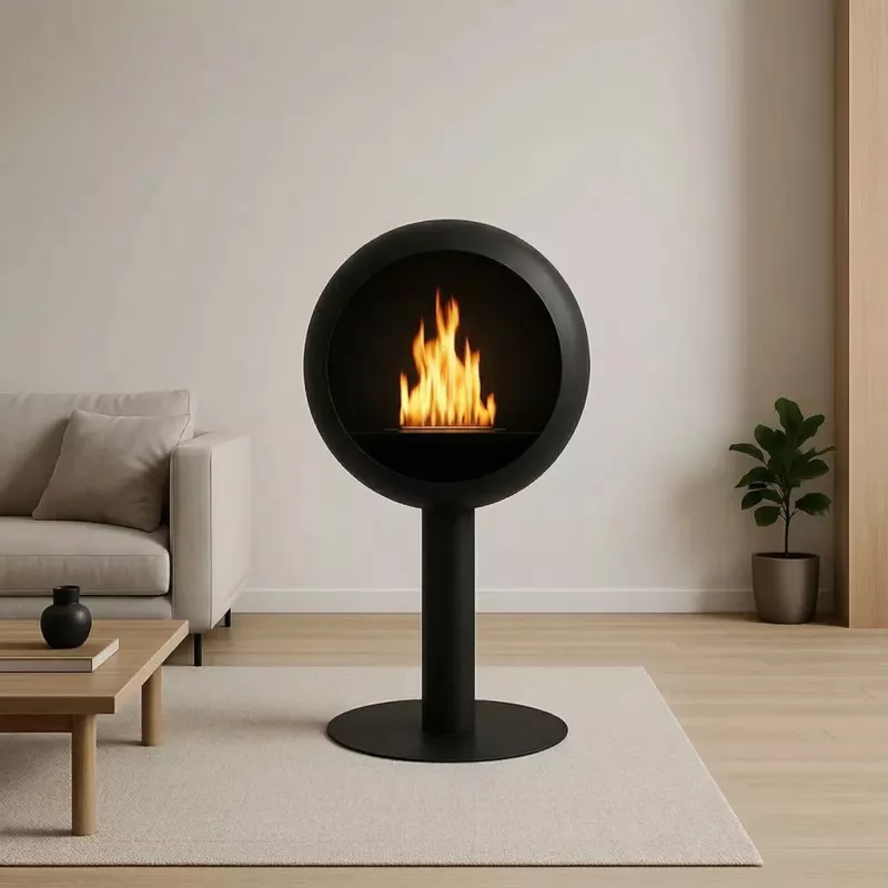 Den fristående modellen är enkel att placera direkt på golvet och ger verkliga lågor och mjuk värme genom den integrerade brännaren. Den mattsvarta ytan gör att Voltenova passar många inredningsstilar, från moderna till minimalistiska miljöer.