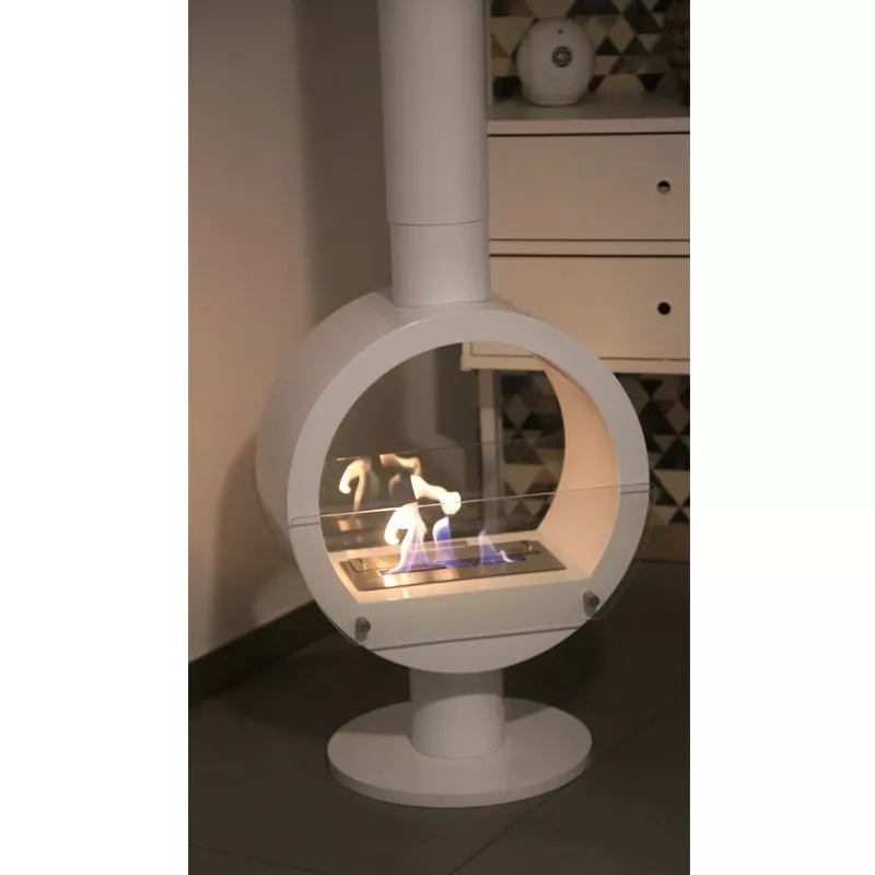 Zenica etanolkamin är en designad fristående etanolkamin / bioetanolkamin i elegant vit blank finish med stilfull, vertikal form — perfekt för dig som vill skapa dekoration, värme och atmosfär i hemmet utan behov av skorsten eller installation. Zenica kan placeras mellan tak och golv, där den runda formen hänger en liten bit ovanför golvet och blir ett dekorativt blickfång i vardagsrum, loungeytor eller andra öppna sociala ytor där både estetik och funktion är viktigt.